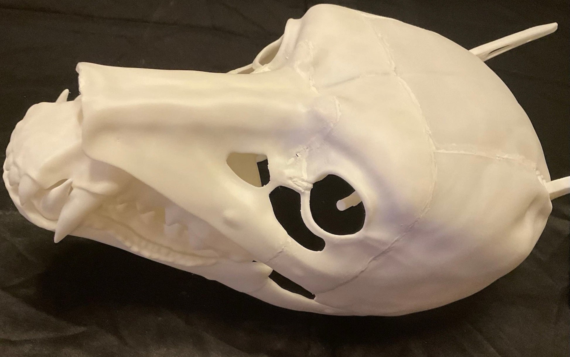 This realistic werewolf mask, crafted from white PLA, features a movable jaw that brings your snarling beast to life. Designed with removable teeth and flexible ears, it offers comfort and customization for the perfect fit. Whether for cosplay or Halloween, this mask combines detailed design with practical features to enhance your transformation into a fierce werewolf.